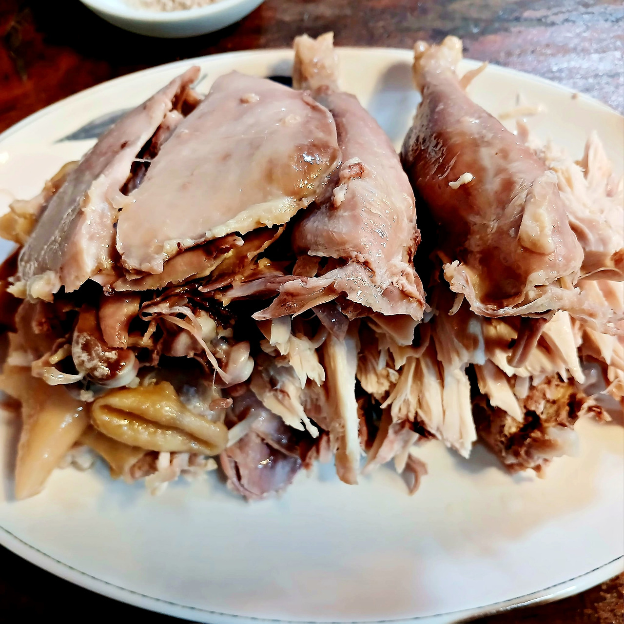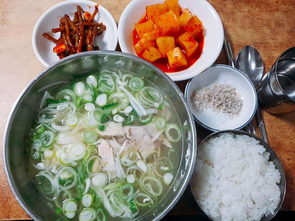 그래서 나중에 지인과 함께 가서 닭찜을 맛봤다. 닭곰탕의 육수를 빼기 위해 통째로 삶은 닭인데 표현은 찜이다. 닭찜은 약수동 처갓집 백숙과 결이 다르다. 다리 날개 몸통 목 껍데기 등으로 먹기 좋게 해체해서 제공된다. 식힌 다음 나와서 쫄깃은 하지만 뜨끈하고 보드라운 처가집 백숙이 더 낫다. 다만 닭곰탕 육수를 무한으로 보급 받을 수 있어 밥 말아먹기 딱 좋다. 결국 닭을 육수에 담가서 먹게 되는데 차라리 뜨끈한 닭곰탕이 좋을 듯하다. 닭은 제법 실하다. 딱 한번 경험할 맛이다. 그러나 닭곰탕은 얼어붙은 도시여행자의 몸은 물론 마음까지 녹여주는 원초적 치킨스톡이다.