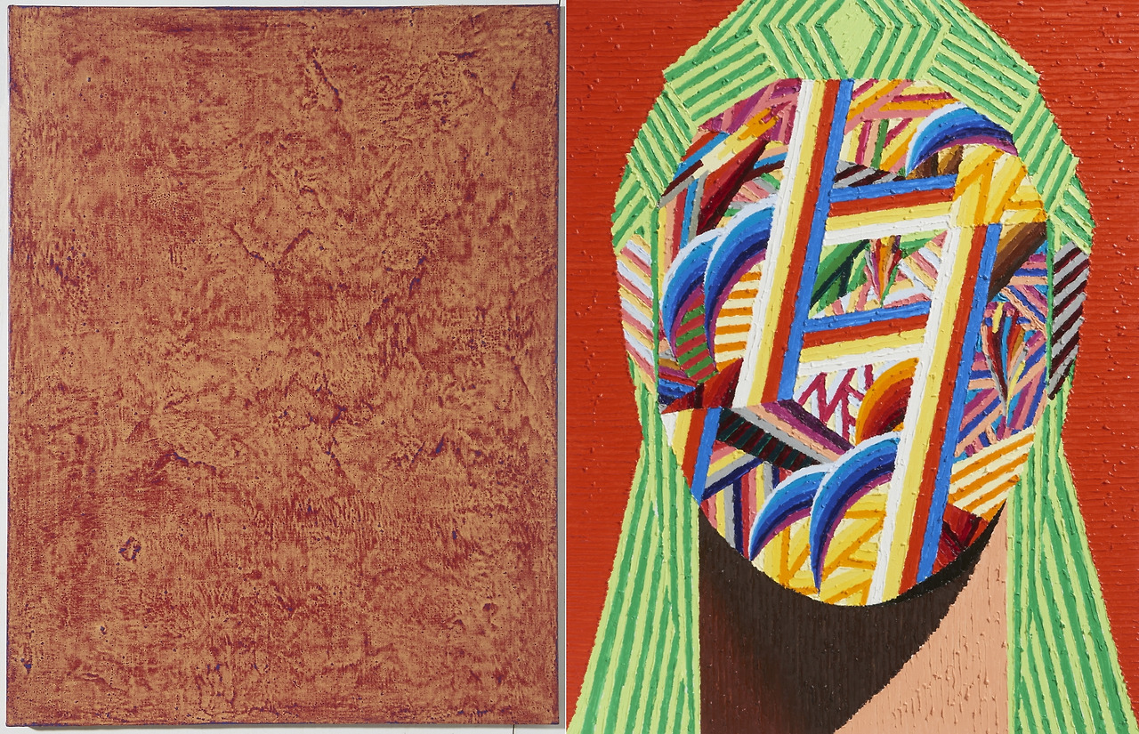 김근중 작가가 전통 민화의 도상을 현대적 팝아트 형식이나 화려한 색감으로 파격적으로 재구성했다면 아들 김선웅은 거기서 한 발 더 나아가 매체의 확장과 내면적 추상으로 다변화를 꾀했다고 볼 수 있다. 김선웅은 독특한 구상 인물화에 기하학적 패턴을 넣은 추상화 같은 자화상(결정되지 않은 얼굴)을 그려내고 있다.