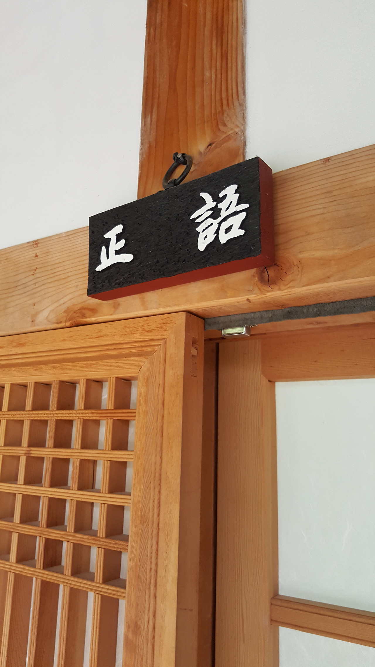 지은지 얼마 안되어 보이는 숙소. 배정받은 방에는 '[正語]'이라고 쓰여있다. 깨달음과 열반으로 이끄는 올바른 여덟가지 길이라는 팔정도의 하나로, 사제의 진리를 깨달아 정견에 맞는 바른말만을 하는 일이라고 한다. 조금 어렵긴 하지만 결국 '바른 말을 하자' 인 듯 하다. 얼마 되지 않는 짐을 정리하고 가만히 앉아 문 밖에 펼쳐진 익숙하지 않은 풍경을 감상하는 시간을 가졌다.