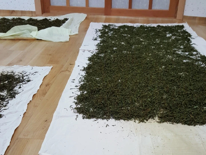 여유가 있어 옆방에서 차를 만드는 일을 잠깐 도왔다. 커피는 좋아하지만 차는 별로 좋아하지 않아 녹차와 홍차 뿐인줄 알았는데, 황차?를 만들고 계셨다. 발효시키지 않고 바로 열을 가해 만들면 녹차가 되고 발효를 시키면 다른 여러가지 차가 된다고 한다. 황차는 반발효차라고 하는데 차를 내리면 노란 빛깔이 난다고 한다.