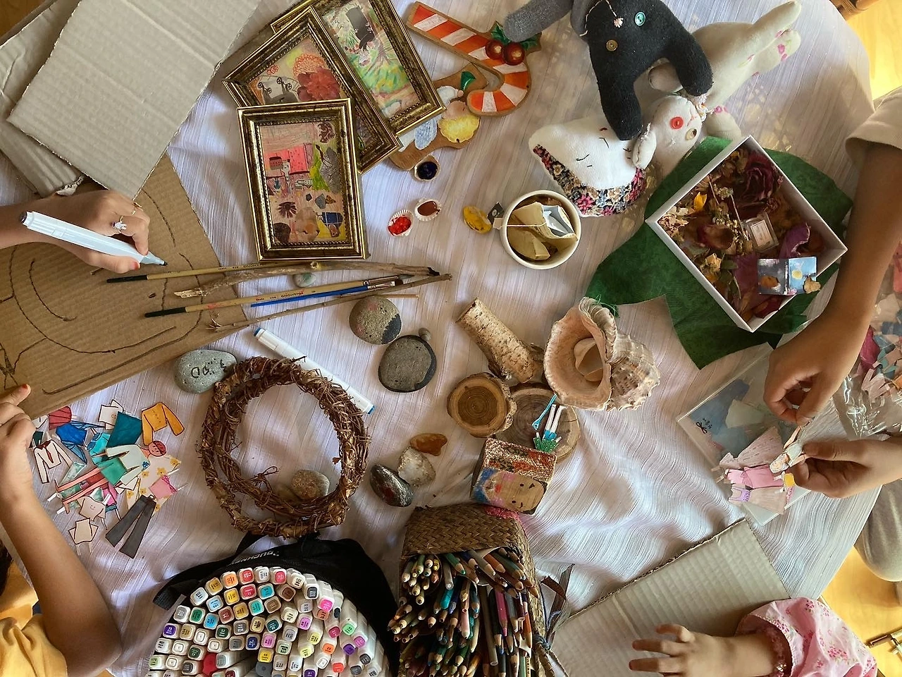 자연물, 일상에서 흔히 보는 소재들이 업사이클링되어 아이들 스스로 정해지지 않은 예술놀이를 구성하고 창조하는 체험이 진행될 예정이예요