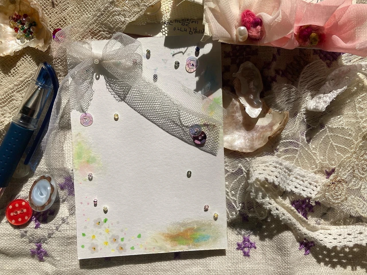 한켠에는 제가 만든 미니카드와 숲뜰별의 놀이가 아이템이 된 물품들도 소량 판매 할 예정이예요