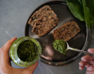 여기 사람들은 명이를 페스토로 만들어 파스타 소스로 먹거나, 빵에 곁들여 먹는 등 다양하게 활용해요.