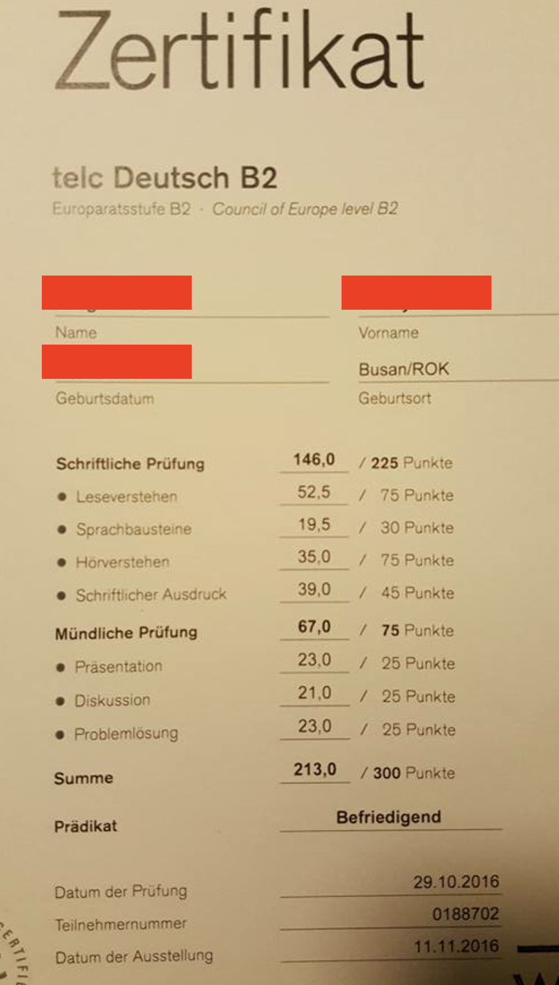 시험은 패스했으나, 실제 독일어수준은 B2에