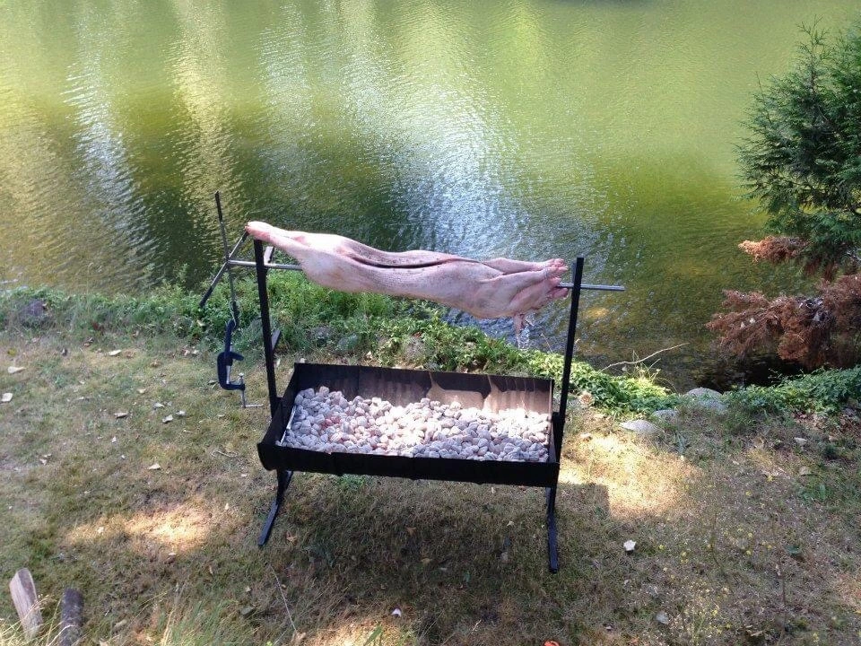 어린 돼지를 '애저'라고 하는데 애저구이를 통째로(산채로는 아님) 하는데 손재주 좋은 아들이 바비큐 통을 몰딩으로 만들어 그럴싸한 틀을 만들었다.