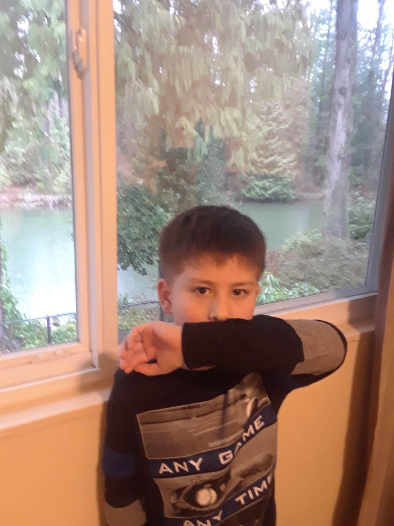 기침할 때 옷의 안쪽에 마스크 안 쓴 아이들