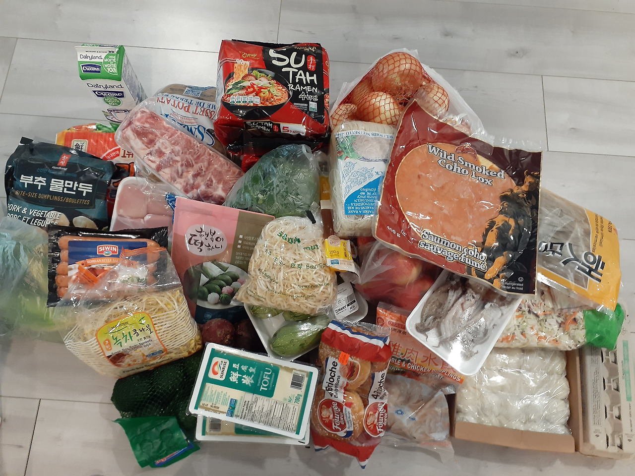 한국 마켓과 서양 마켓을 섭렵하는 금요일에 구입한 집콕 일주일치 식량