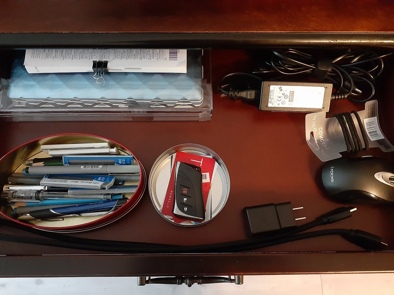 그렇다고 정신없이 어지르는 것이 아니고 금방 찾아 쓸 수 있게 서랍 안에도 차곡차 곡이 없이 단면으로 쫘악 펼쳐 놓는 것이다. 그러니 얼마나 비효율적인 공간 활용인지