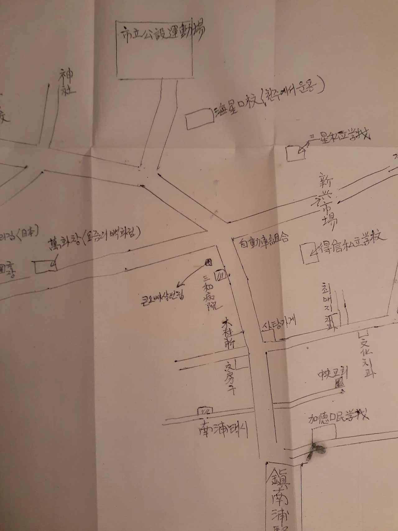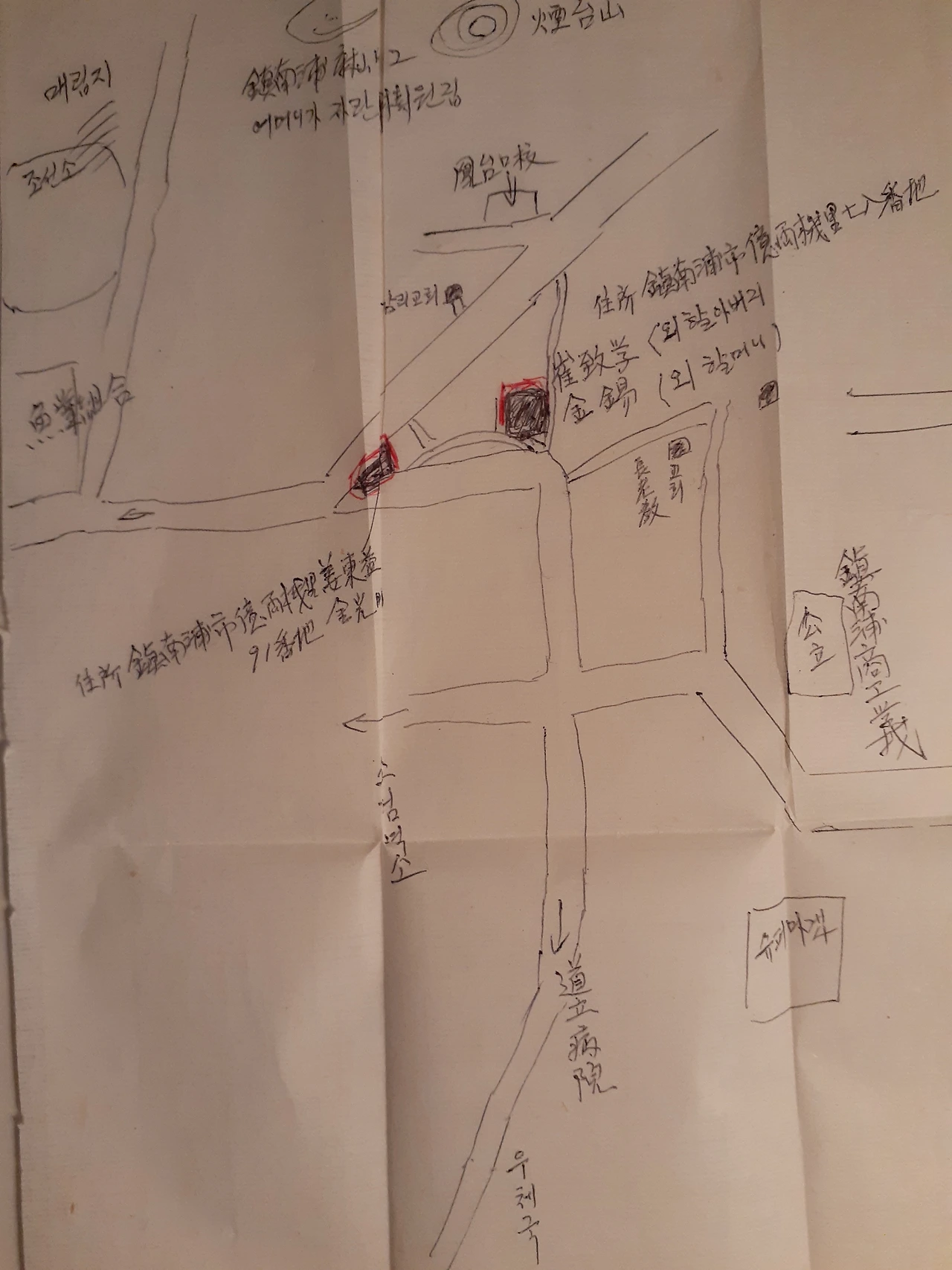 통일이 되면 평안도 남포(진남포) 시부모님의 집을 찾아가 보라고 그려주신 약도