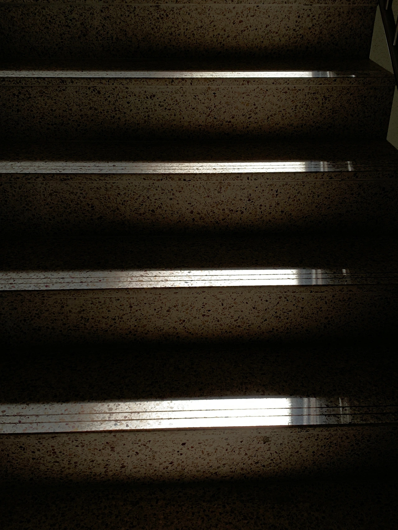 그늘진 자리에 비친 햇살을 사진으로 남기려 휴대폰 카메라를 켰다. 빛을 어둡게 조절하니 계단에 비친 햇살은 더욱 선명했다.