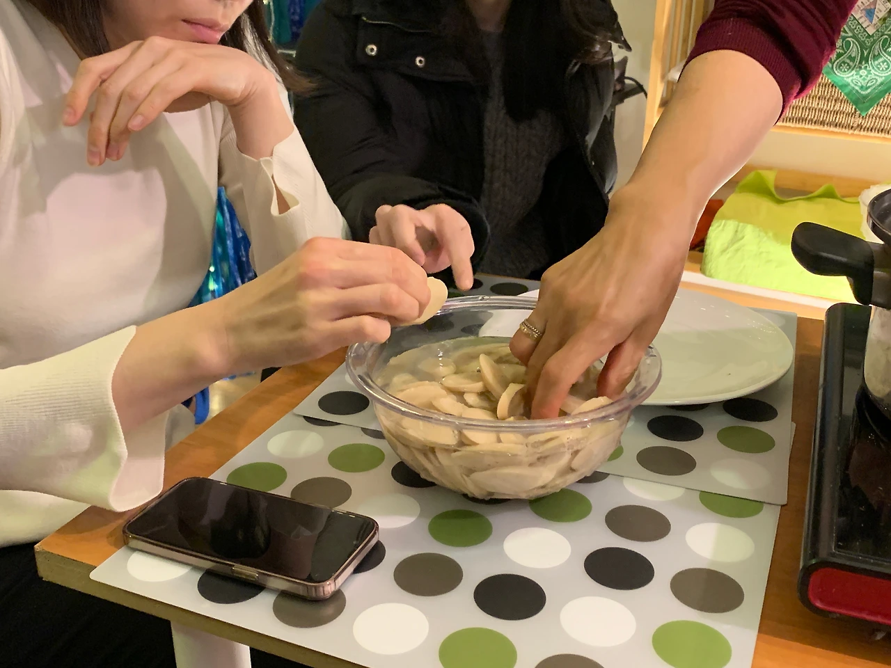 자연에서 나고 자란 재료들은 맛으로 계절을 떠올리게 했다. 여름은 매운 맛으로, 겨울은 단 맛으로 같은 무라도 계절을 타고 성질이 다르다는 걸. 채썬 채소들의 크기는 제각각이었다. 굵직하거나 얇거나 일정한 크기로 채 썬 채소는 눈으로 담아도 먹기도 전에 배가 부른다만 칼질부터 서툰 나는 최대한 잘 썰어보려고 했던 것 같다. 요리를 담당하신 성희님께서 음식의 기운에 대해 이야기해주셨던 게 기억에 남는다. 서양 사람들 생각에서는 이해할 수 없는 사고라지만 우리는 안다. 기운과 정성은 손끝에서 나온다고. 음식은 레시피에 적힌 조리 시간대로, 계량대로 딱딱 맞춘다고 하여 음식 맛까지 비례하진 않는다고.