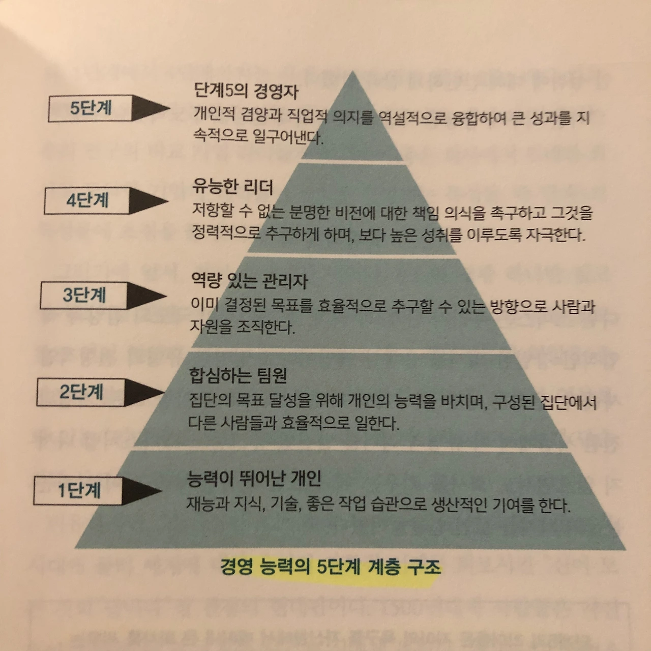 1단계에서 5단계로 갈수록 '개인의 역량'에서 '타인에 대한 영향력'으로 확장된다.