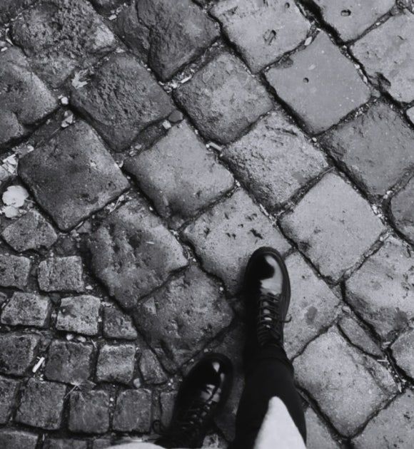 회색의 코블스톤 바닥. 규칙적이지만 완벽히 정렬되지 않은 돌의 결. 그 사이사이 스며든 어둠과 습기감은