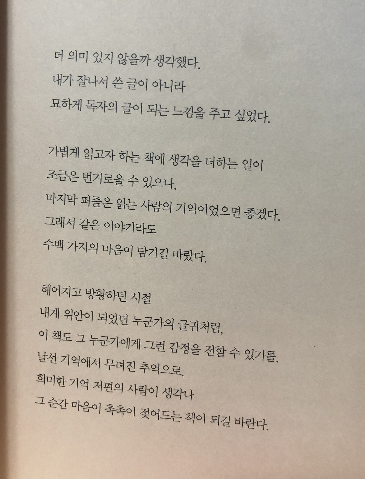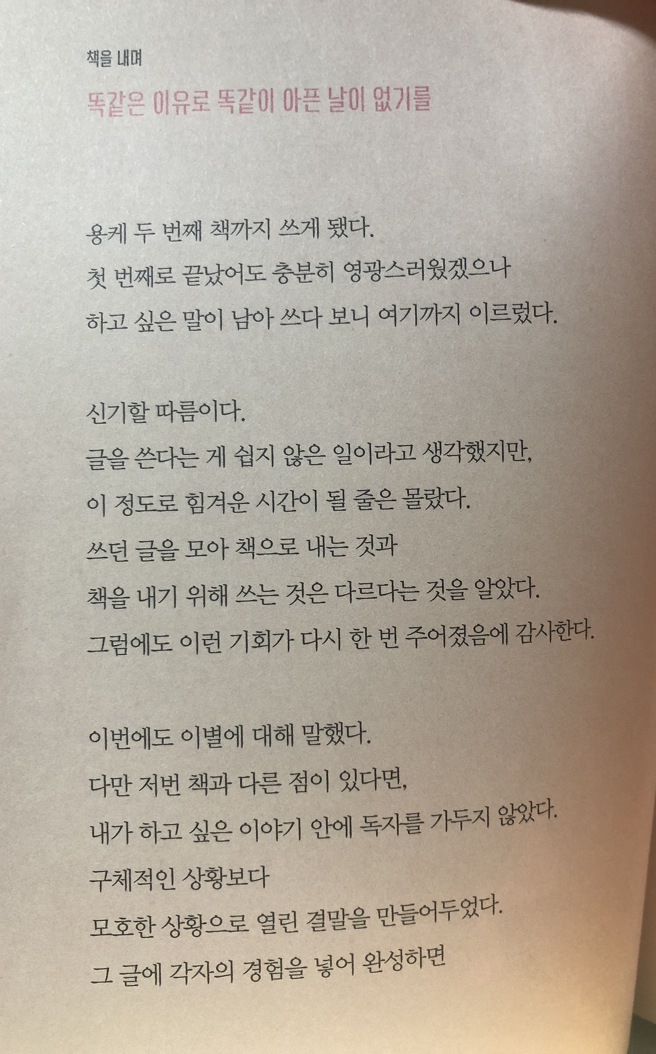 예전 어떤 글귀에서 위로를 받았듯, 어떤 글이 누군가에게 그런 위로를 줄 수 있길 바랍니다.