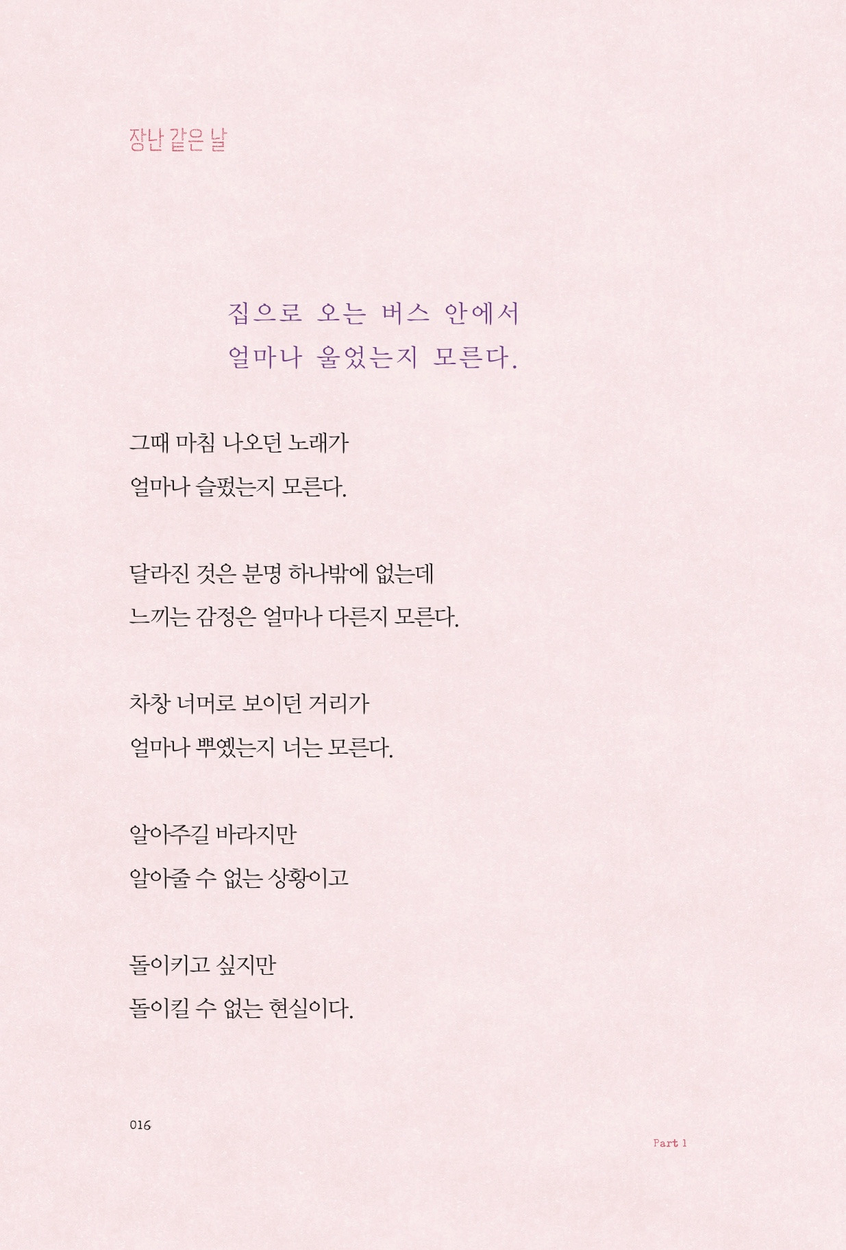 집은 버스 종점과 가까워, 근처를 도착할 때쯤 항상 버스에 타고 있는 사람이 많지 않았다.