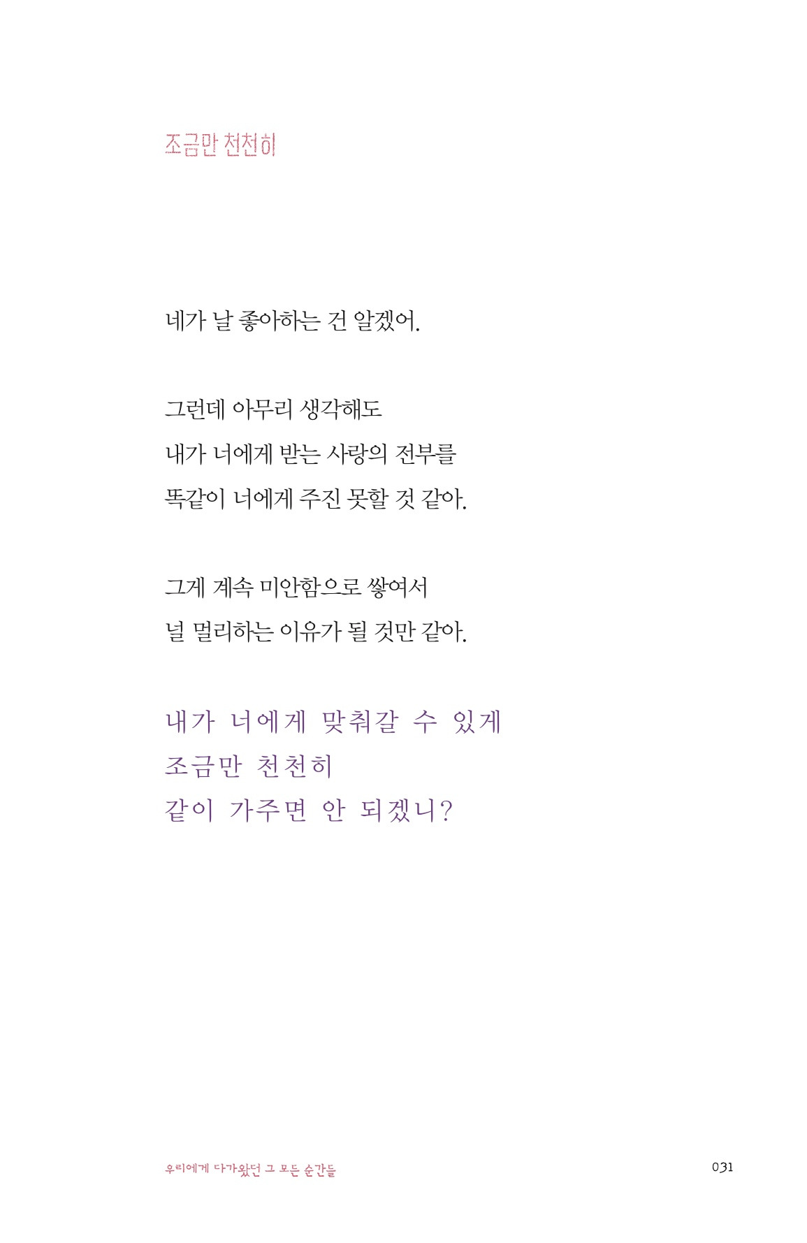 저는 속도를 맞춰 사랑하는 법을 배우는데 오랜 시간이 걸렸습니다.