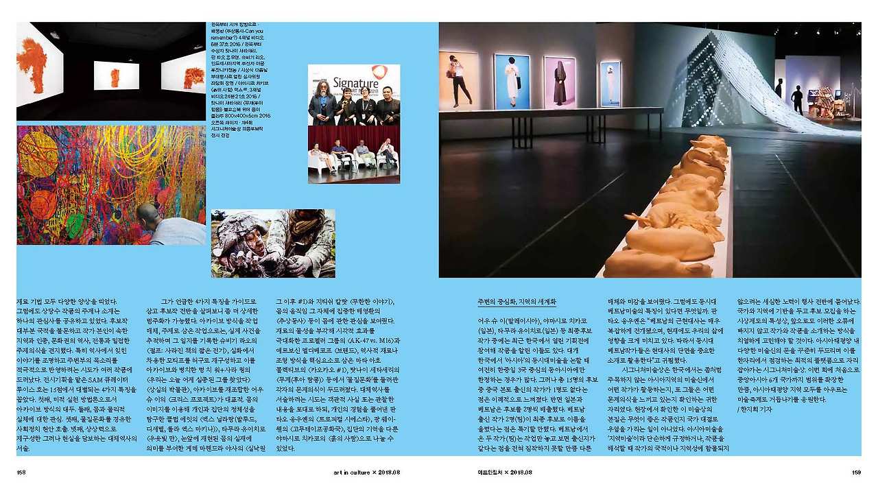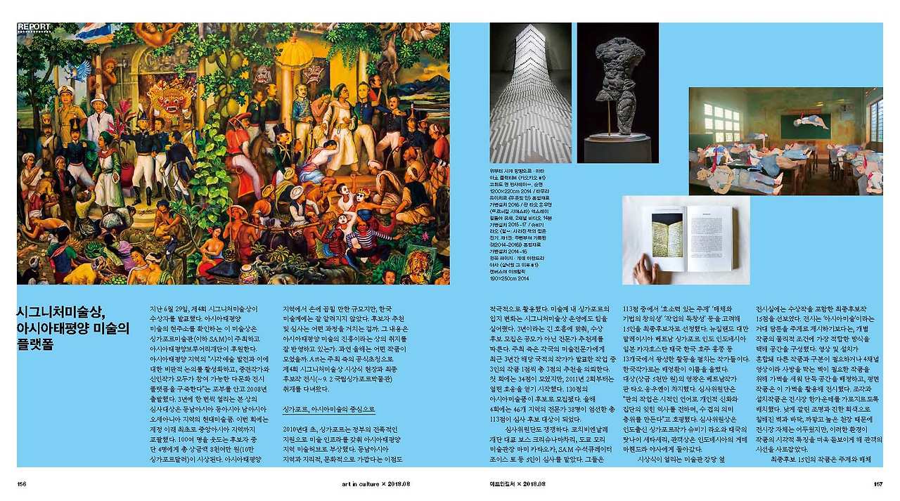 지난 6월 29일, 제4회 시그니처미술상이 수상자를 발표했다. 아시아 태평양 미술의 현주소를 확인하는 이 미술상은 싱가포르미술관(이하 SAM)이 주최하고 아시아태평양브루어리재단이 후원한다. 아시아 태평양 지역의 “시각예술 발전과 이에 대한 비판적 논의를 활성화하고, 중견작가와 신인작가 모두가 참여 가능한 다문화 전시 플랫폼을 구축한다”는 포부를 안고 2008년 출발했다. 3년에 한 번씩 열리는 본 상의 심사대상은 동남아시아 동아시아 남아시아 오세아니아 지역의 현대미술품. 이번 회에는 제정 이래 최초로 중앙아시아 지역까지 포괄했다. 100여 명을 웃도는 후보자 중 단 4명에게 총 상금액 8천여만 원(10만 싱가포르달러)이 시상된다. 아시아 태평양 지역에서 손에 꼽힐 만한 규모지만, 한국 미술계에는 잘 알려지지 않았다. 후보자 추천 및 심사는 어떤 과정을 거치는 걸까. 그 내용은 아시아 태평양 미술의 진흥이라는 상의 취지를 잘 반영하고 있는가. 과연 올해는 어떤 작품이 모였을까. Art는 주최 측의 공식 초청으로 제4회 시그니처미술상 시상식 현장과 최종 후보작 전시(~9. 2 국립싱가포르박물관) 취재를 다녀왔다.