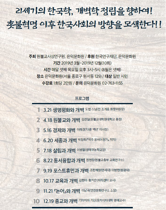 이 대화와 협동운동을 통해서 이 시대가 요구하는, 그러면서도 우리에게 맞는, 새로운 ‘세계’를 발견하고, 그 세계들을 ‘개벽학’의 형태로 정립하여, 한국사회를 향해 발신해 나가고자 한다. 부디 올 한해에 그치지 않고 20년, 30년 지속해 나갈 수 있으면 좋겠다.