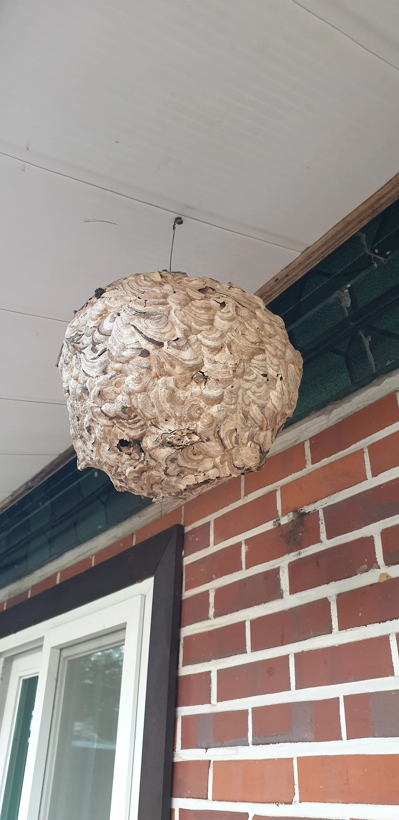 처마에 말벌 집이 있길래 저거 저대로 두면 위험하지 않겠냐고 물어보니 빈 말벌집이라고 하네요. 저렇게 빈 집을 두면 다른 말벌이 와서 집을 짓지 않는다고 합니다.