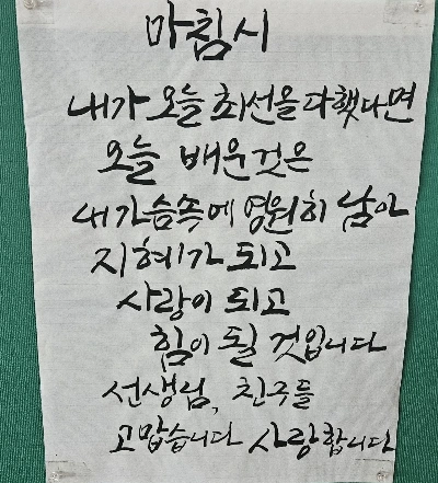 버티어주어 고맙다고)