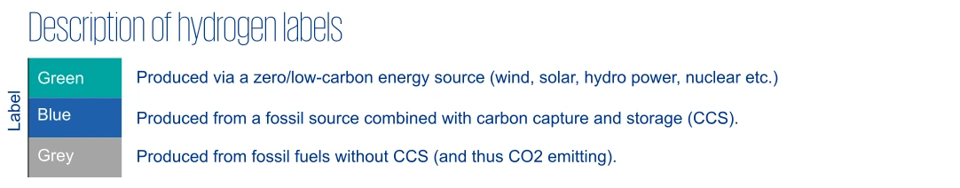 그린수소 : 탄소제로(풍력, 태양광, 원자력 등) 방식으로 수소 생산