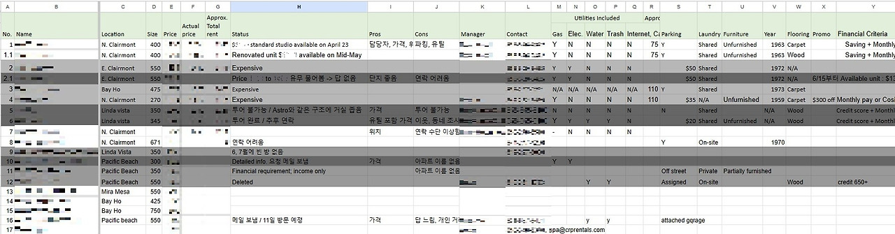 어떤 아파트는 연락을 하자마자 24시간 내에 답이 오는가하면, 어떤 곳은 이메일은 커녕 전화도 받지 않았다. 아파트 입주 절차부터 시작해서, 살면서 수리가 필요하거나 질문이 생길 것을 생각하면 처음부터 난항을 겪는 곳은 당연히 탈락이었다.