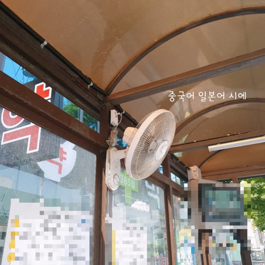버스 정류장에 선풍기가 있네?! 이건 너무 좋은 서비스.