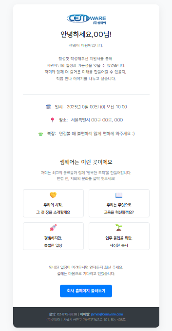 메일 양식이다. 하루에도 수없이 지원하는 지원자들에게, 이러한 멘트는 감사와 위로의 말보단, 그저 '불합격 통지'일 뿐이다. 그래서 난, 조금 바꿔보기로 했다.