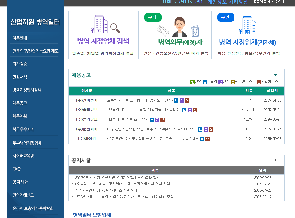 - 산업지원 병역일터