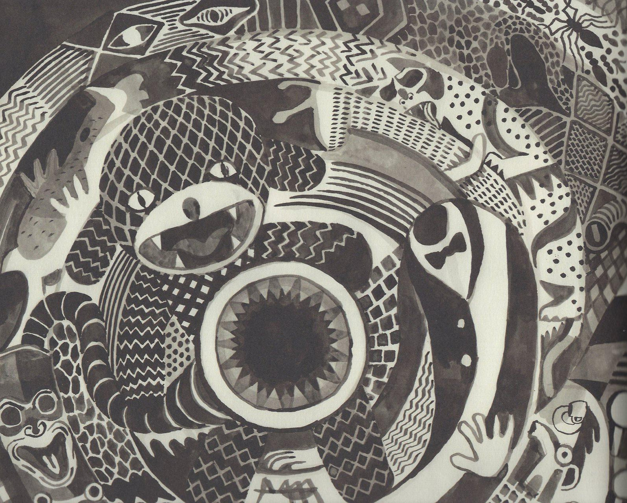 또한 검은 기호는 위협적인 표범의 친구들에게도 동일하게 반복된다. 그들이 아이를 어둠으로 삼키려 할 때 그들의 형태는 점점 추상화되며 무수한 검은 점의 군집으로 확장된다. 이 같은 검은 기호의 결합과 분리는 꿈의 언어 체계를 닮아 있다. 게다가 표범과 그의 친구들은 상상의 친구이라 할 수 있는데 그것은 그 자체로 꿈 또는 무의식을 의미한다.