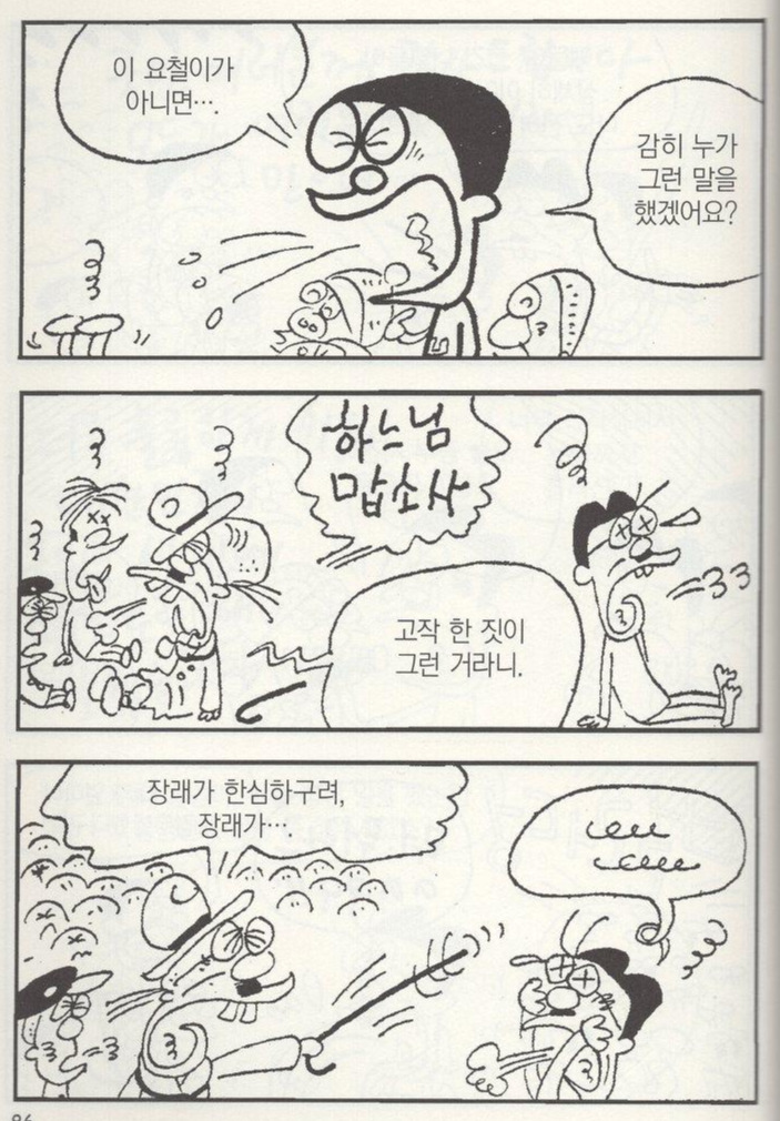 다시 <여탕 보고서>의 선정 이유로 돌아가 보자. 선정 이유를 읽다 혹 떠오르는 만화 장르가 있지 않은가? 남녀노소 함께 볼 수 있는 만화, 만화다운 만화. 70~80년대 많은 사랑을 받은 <꺼벙이>, <심술통>,<로봇 찌빠>, <맹꽁이 서당> 같은 명랑만화가 떠오른다. 이들 작품은 한번 보면 잊지 못할 주인공과 일상성에서 오는 잔잔한 웃음을 특징으로 한다.
