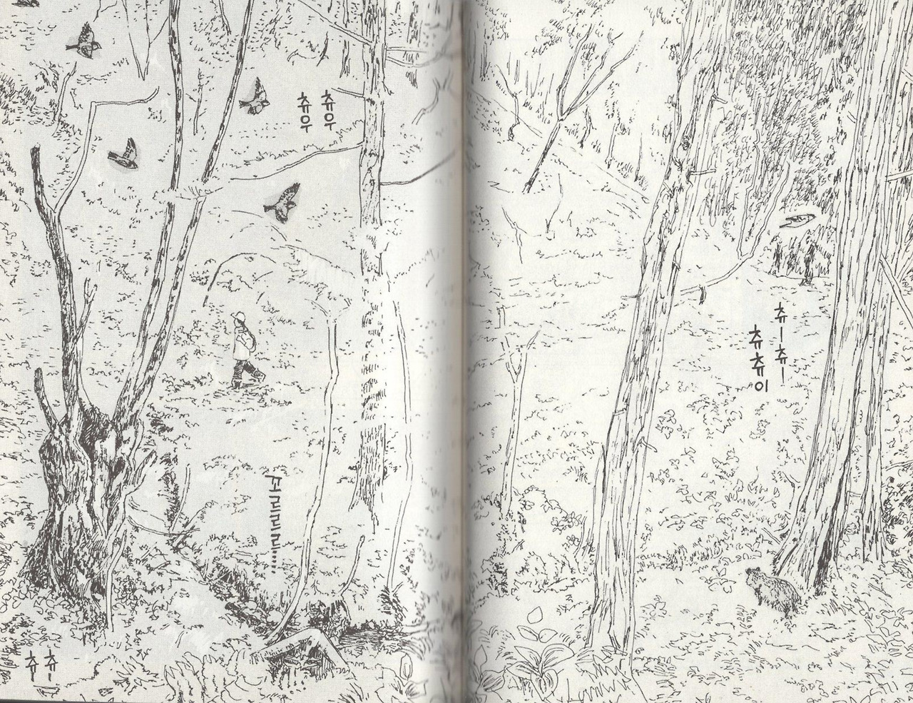 <리틀 포레스트>는 일본 토호쿠 지방의 마을 코모리를 배경으로 한 음식 만화다. 매 에피소드마다 음식을 만들고 먹는 모습을 섬세하게 보여준다. 한편으로 이 작품은 농촌 생활 만화이기도 한데, 그래서 주인공이 먹는 음식의 모든 재료는 주변 자연으로부터 얻는다. 이 과정에서 우린 자연스레 농사를 지어 자연의 결실을 수확하는 주인공의 모습을 지켜보게 되며 더 나아가 이 모든 것을 넉넉히 감싸는 자연을 바라보게 된다.