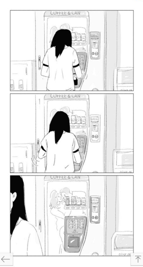 다시 한 번 눈으로 돌아가 보자. 눈의 움직임은 신체의 가장 미세한 움직임 중 하나다. 눈을 그린다는 건 달리 말해 순간을 놓치지 않는 섬세한 눈을 가진다는 의미이다. 따라서 눈은 더 이상 주인공만의 문제가 아닌 작가의 문제이기도 하다. 눈의 주제론 체계는 자연스레 작가의 눈 그러니까 작가의 시선으로까지 확장되는 것이다. 그러면 정원 작가는 어떠한 시선으로 세상을 그려낼까. 작가는 주인공의 삶에 적극적으로 끼어드는 것이 조심스럽다. 그들에 관해 말하고 있지만 어느 순간에 이르러서는 자꾸만 머뭇거린다. 주인공의 내면과 감정을 직접 보여줘야 할 때 가끔은 뒷모습으로 그것을 대신하곤 한다. 이런 점에서 관조적 시선 즉 정적인 롱테이크를 연상시키는 연출은 정원 작가 작품에서 필연적 귀결처럼 보인다. 만화에서 롱테이크를 연출하는 방법은 크게 두 가지다. 첫째, 칸을 확장시켜 공간에 시간을 담는다. 즉 칸에 머무는 시간을 늘려 시간의 지속성을 확보하는 것이다. 하나의 그림은 사진과 달리 오직 하나의 순간만을 재현하진 않는다. 둘째, 특정 순간을 잘게 쪼개어 연속으로 이어붙이는 방법이다. 이 연출은 앞선 사례와 비교하면 만화적이기 보다 영화적인데, 차이보다는 연속의 개념으로 물리적, 심리적 시간을 지속시킨다.