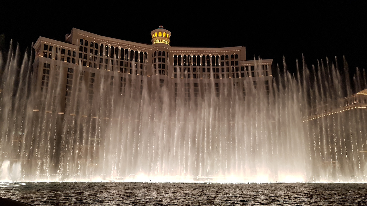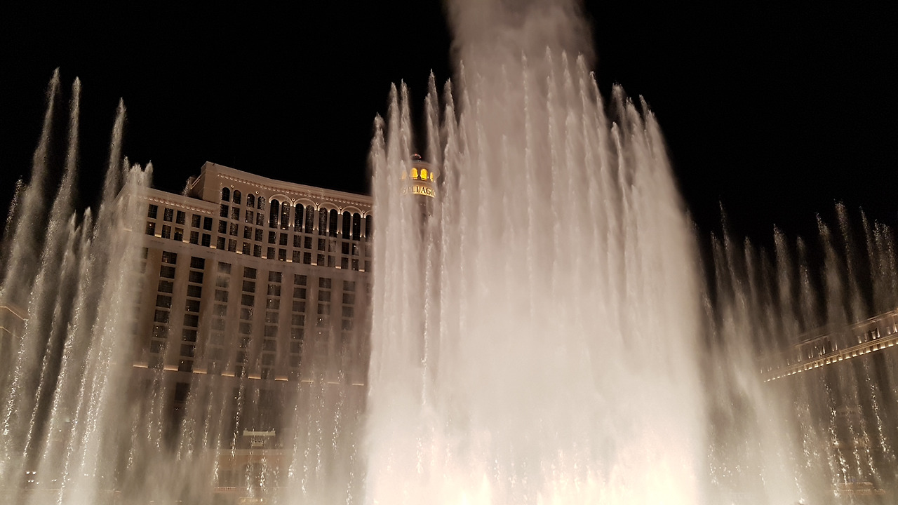 피크 시간(20~22시)에는 매 15분 마다, 이 외에는 매 30분마다 벨라지오 호텔 앞에서 펼쳐지는 음악분수쇼를 볼 수 있다. 여수에서 봤던 분수쇼보다 몇 배 더 웅장하고 압도적인 규모에 끝날 때까지 연이어 셔터를 눌러댔다.