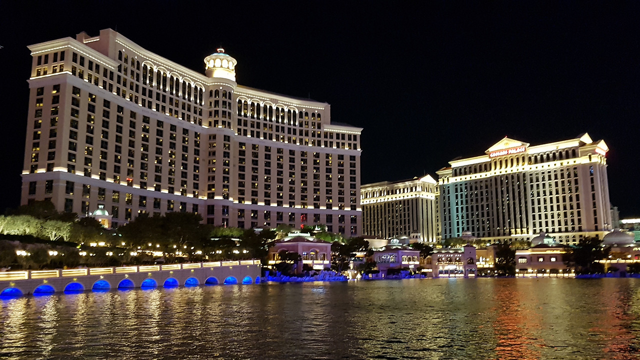 저녁 식사 후, 라스베가스(LasVegas)의 랜드마크인 벨라지오(Bellagio) 호텔과 그 앞에서 펼쳐지는 야간 분수쇼를 보기 위해 밖으로 나왔다.