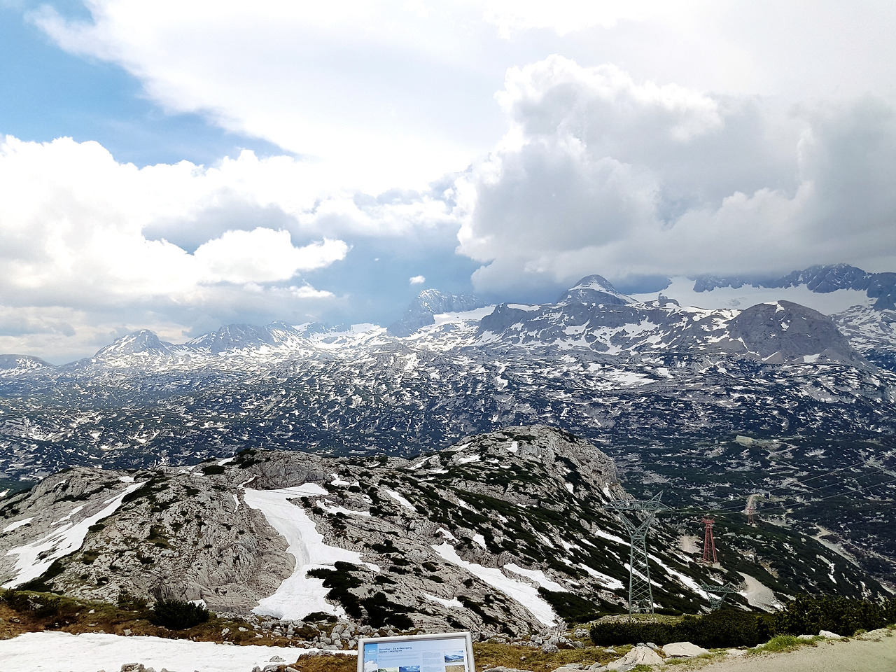 체크인을 마치니 오후 1시 30분을 가리키고 호텔 주인에게 물어보니 오늘 가고자 했던 5 Fingers가 있는 Dachstein 산 정상에서 내려오는 마지막 곤돌라 시간이 오후 4시 30분이란다. 정해진 시간에 맞춰 오가는 버스를 기다리기엔 시간이 없었다. 택시 요금을 물어보니 10 유로면 Dachstein(다흐슈타인) 곤돌라 입구까지 갈 수 있다고 한다. 그 순간만큼은 돈보다 시간을 선택했다. 사실 여행 자체가 돈보단 시간을 택했다고 볼 수 있지만 말이다. 30분 정도 곤돌라를 타고 2995m에 이르는 Dachstein(다흐슈타인) 산 정상에 도착했다. 어찌나 빠르고 거칠던지 곤돌라 타는 내내 고소공포증이 별로 없던 나마저 여러 번 생명의 위협을 느꼈지만, 정상에 도달하며 시시각각 변하는 주변 경관을 바라보며 두려움을 잊을 수 있었다.