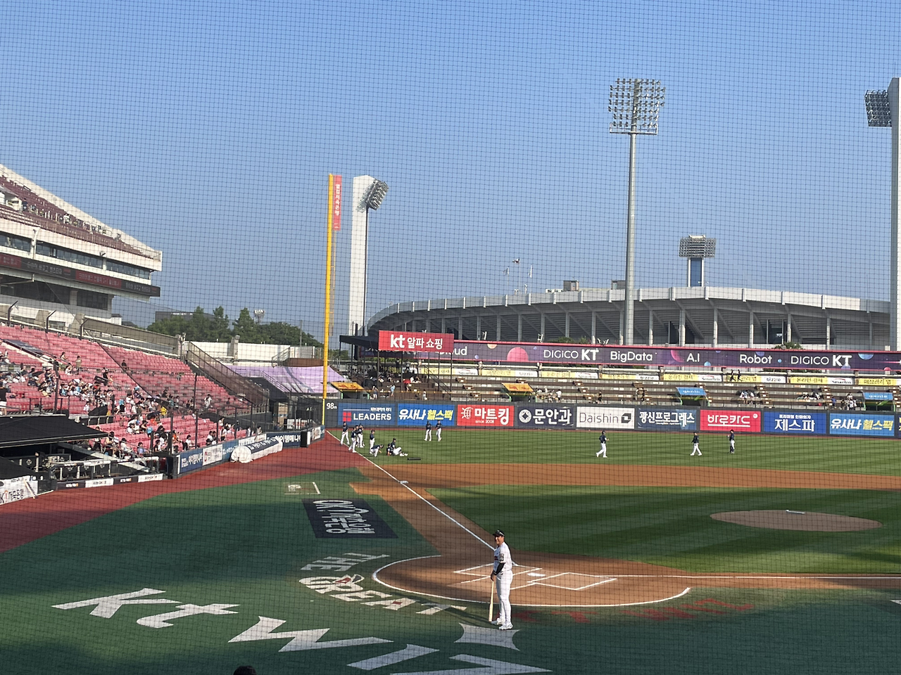 감정이 널뛰는 나를 야구장에 데려가준 그. 그는 자기만의 가장 좋은 방법으로 나를 여기 저기 데려가고 이것 저것 먹인다. 이날 우리는 피자를 먹었다. 날씨가 좋았다. 그런데 아무리 생각해도 KT위즈 김상수 응원가는 바뀌어야 할 것 같다. 나라면 야구방망이 휘두르다 힘빠질 것 같아. 날려버려 김상수 야야야야야. 안타안타 김상수 야야야야야. 다섯번의 '야'가 갈수록 음정이 떨어진다. 땅굴까지 내려가겠어. 야↘야↘야↘야↘야.