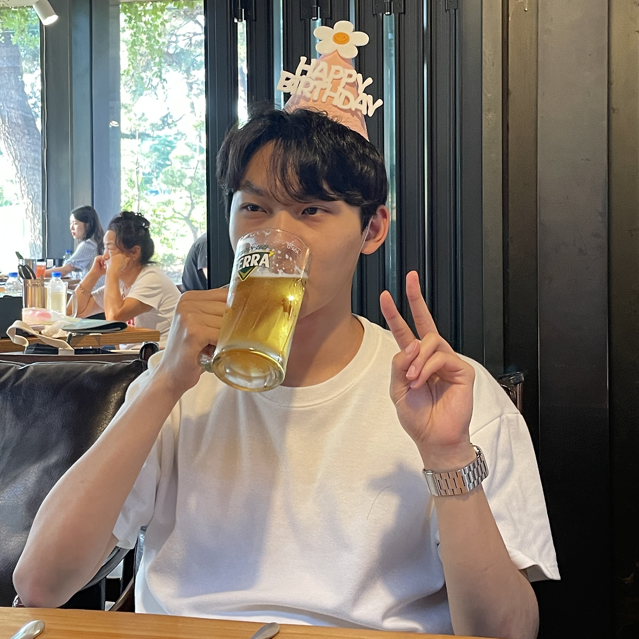 우리 홍구. 귀엽다. 핑크색 꼬깔모자 진짜 안 어울린다. 눈썹이 앵그리버드니까 더 안 어울린다. 하지만 귀엽다. 지금 당장 앵그리버드!라고 놀리고 싶다. 생일 축하해 홍구. '홍구'와 '박사' 라는 말은 참 안 조화롭지 않지만 묵묵히 자기 갈 길 알아서 잘 가는 것 같다. 사실 잘 모른다. 얘는 무슨 공부를 하는걸까. 공대생의 공부란 어떻게 생겨먹었을지. 그래도 내 생일에 생각보다 값 나가는 레인부츠를 턱 선물해주고 숙미랑 뮤지컬에도 데려가주는 걸 보면 잘 사는 것 같다. 좋은 나라로 가는 학회가 많아보여 부럽다 홍구야. 아프지말고 건강해.