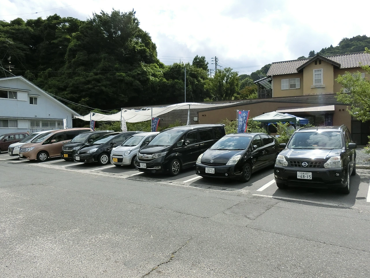 주차장의 자동차 번호판을 보니 히로시마 등 외부 차량이 대부분이다.