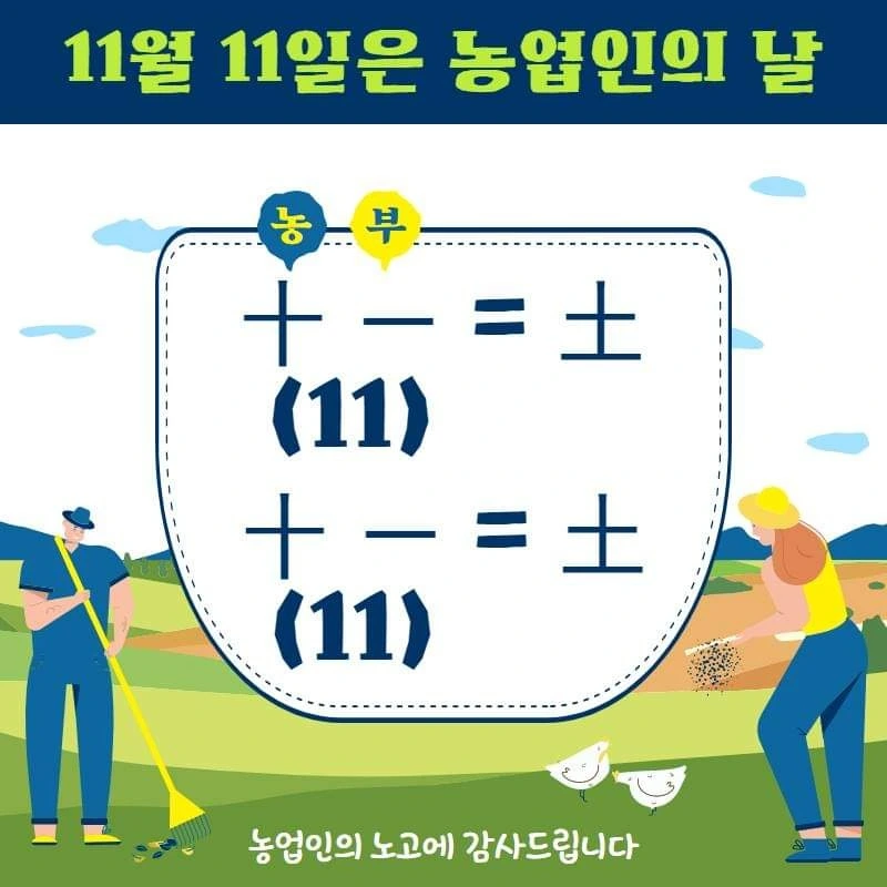 이날을 빼빼로데이로 여기는 분들이 많지만, 한자 11(十一)을 합치면 흙 토(土)가 되기 때문에 흙 ‘土’자가 겹친 ‘土月土日’을 아라비아 숫자로 풀어서 적용했다고 합니다.