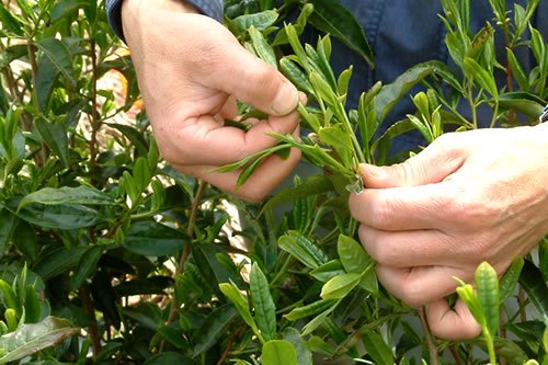 당시는 대부분 녹차의 집산지인 시즈오카로 출하되었다. 고치産은 깊은 풍미와 함께 차를 우려낸 다음에도 찻잎의 형태가 그대로 남아 있는 것이 특징이다. 반면, 시즈오카를 포함한 관동産은 덖는데 시간이 많이 걸리므로 색은 좋지만 나중에 잎이 부서지고 너덜거리다.