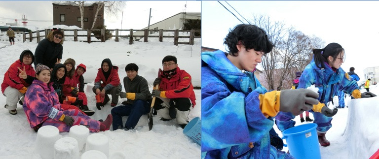 답변 : 북해도를 꼭 와보고 싶었다. 봉사도 할 수 있고 북해도를 여행할 수도 있어서 너무 좋다. 우리 지역에서는 이렇게 많은 눈을 구경할 수도 없고 특히 한국이나 중국 학생들과 교류할 수 있어서 좋았다. 기억에 많이 남을 것 같다.