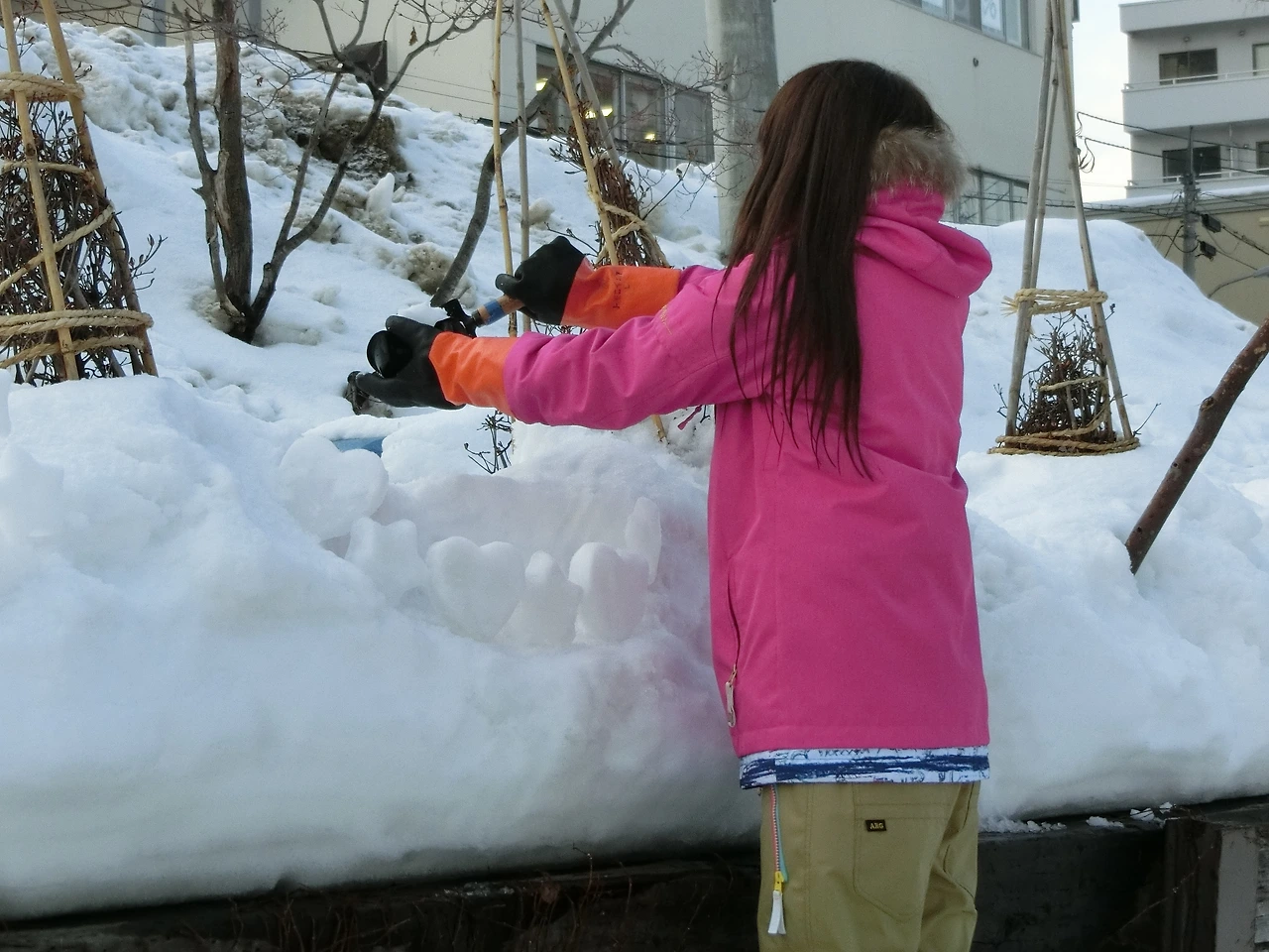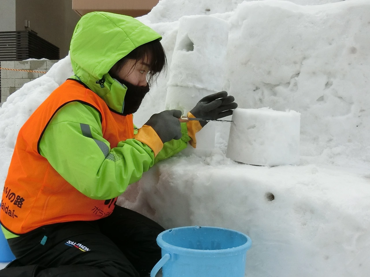 양동이와 삽 등을 이용하여 설등이나 오브제를 만든다. 각 현장에는 담당자가 배치되어 초보자를 지도하기도 한다.