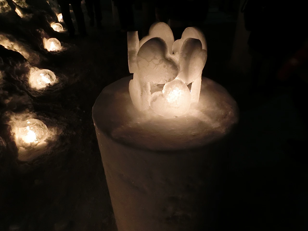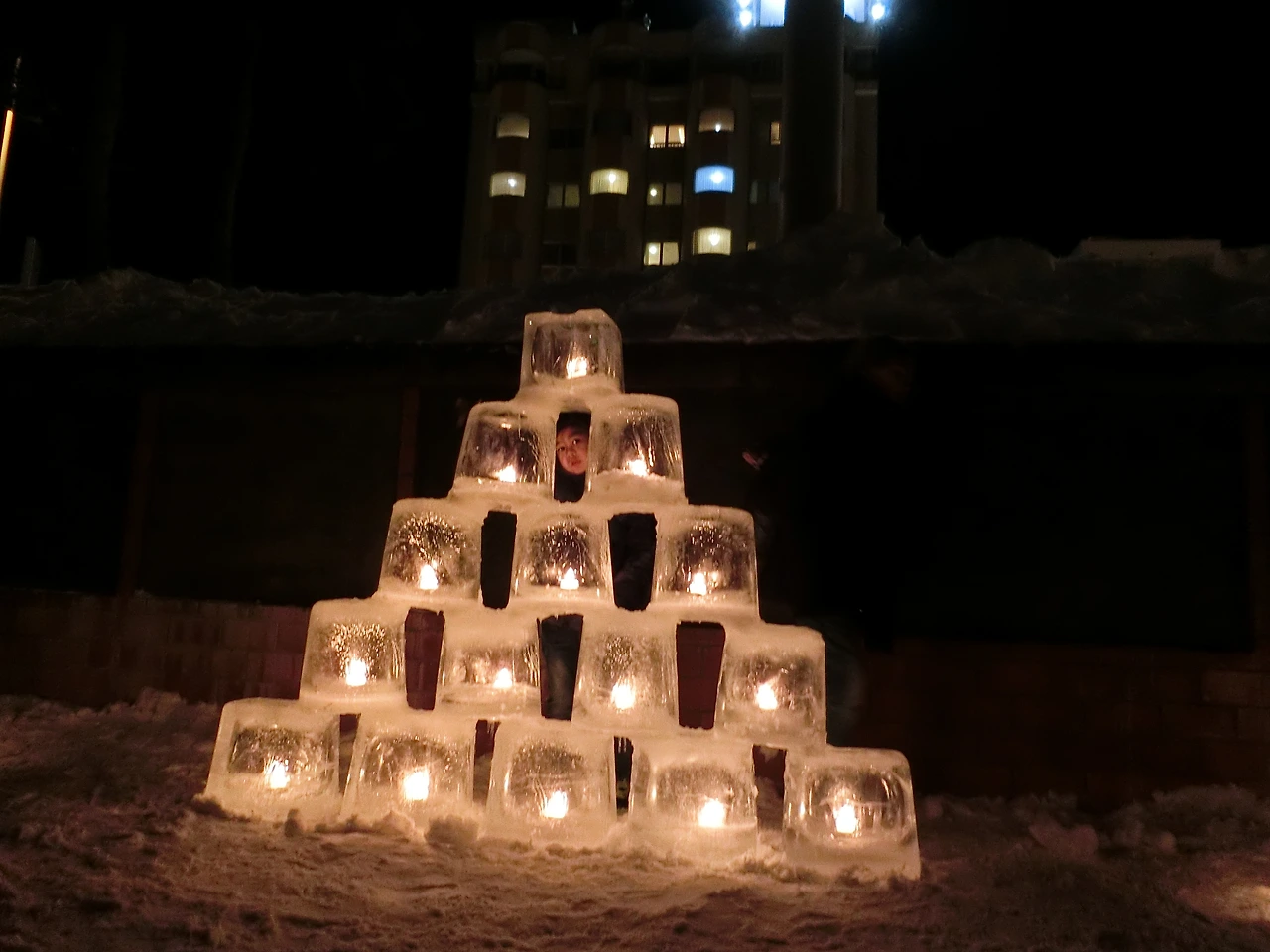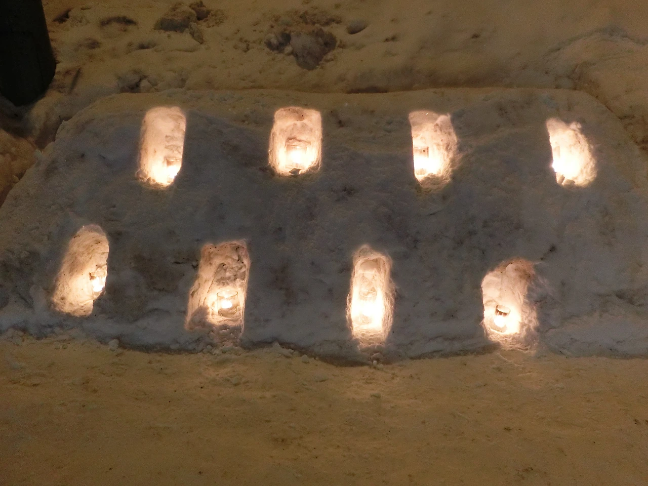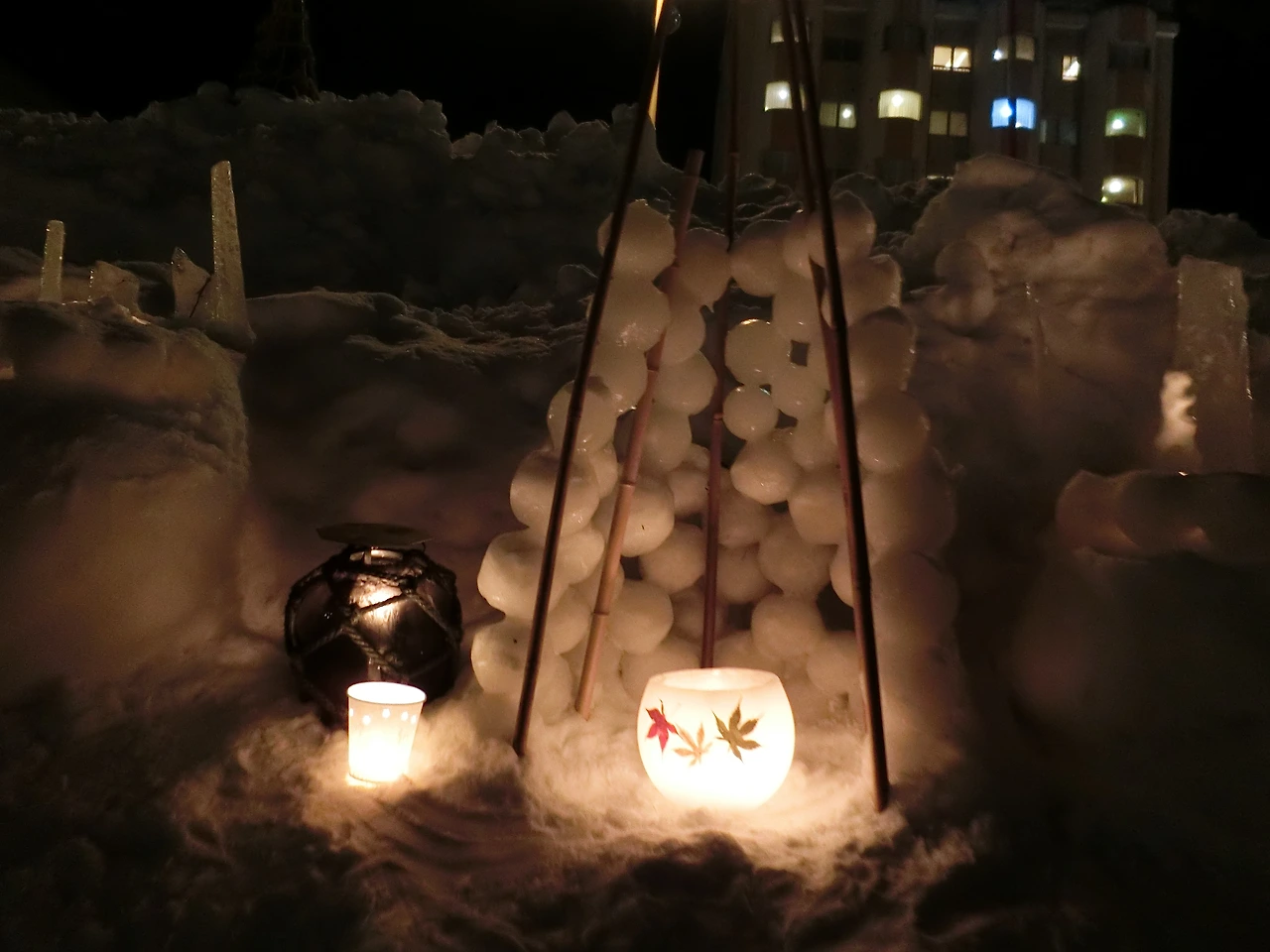 양동이에 눈을 채워 넣고 한 가운데에 양초가 들어갈 자리를 만들고 뒤집어 양동이를 빼내기만 하면 되는데, 익숙해지면 누구나 할 수 있는 작업이지만 가장 중요한 작업이다.
