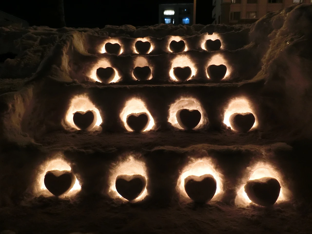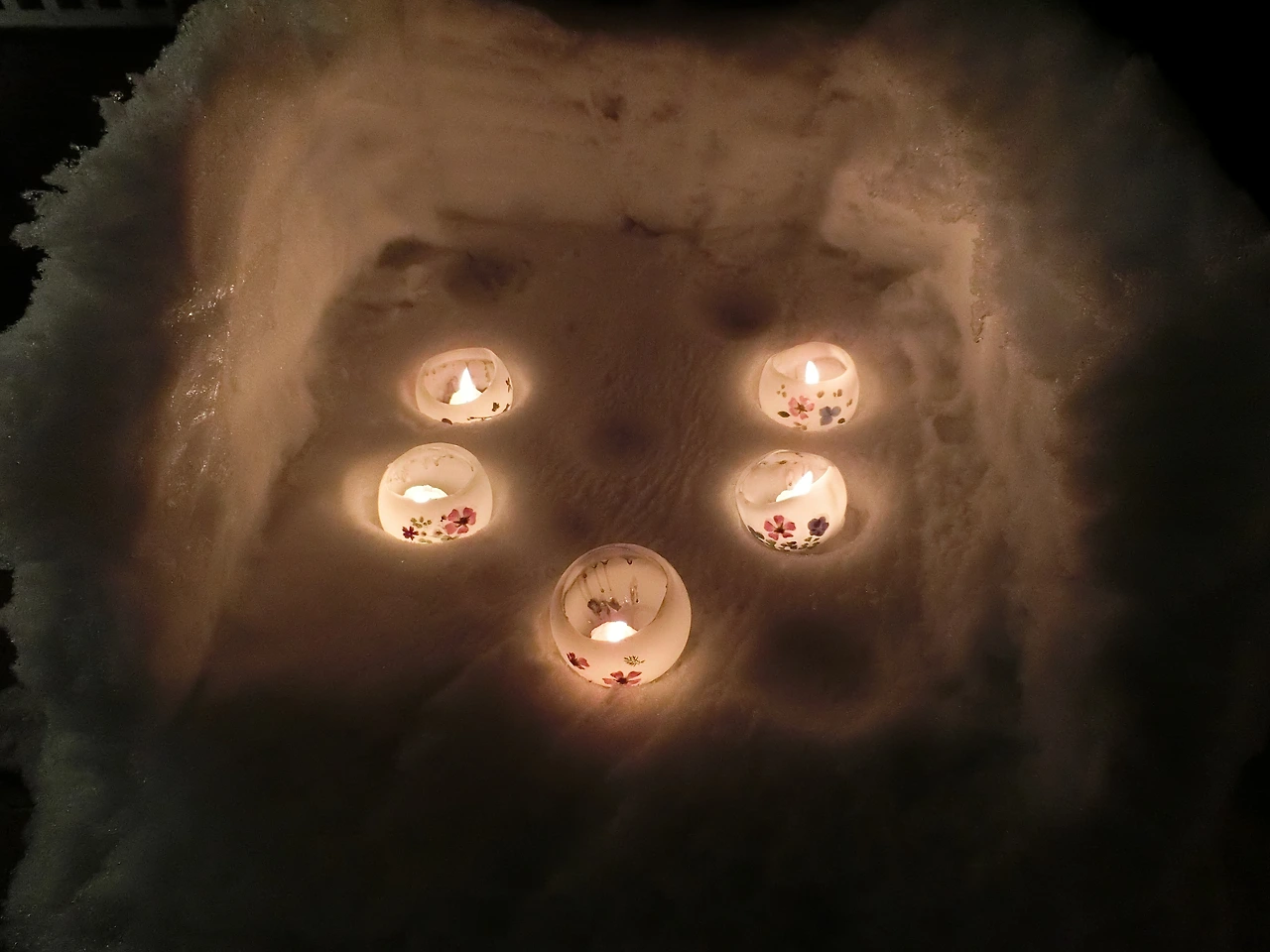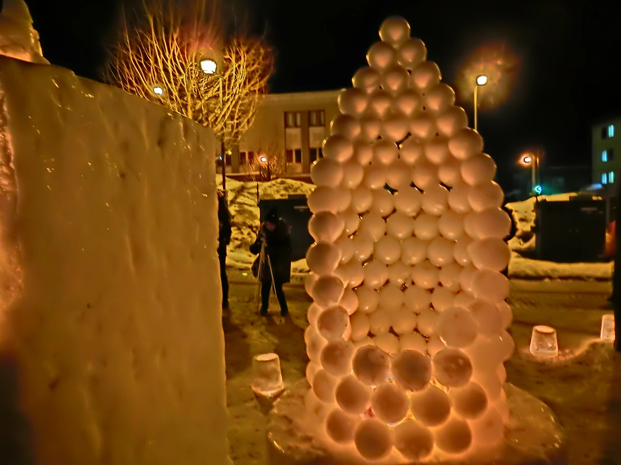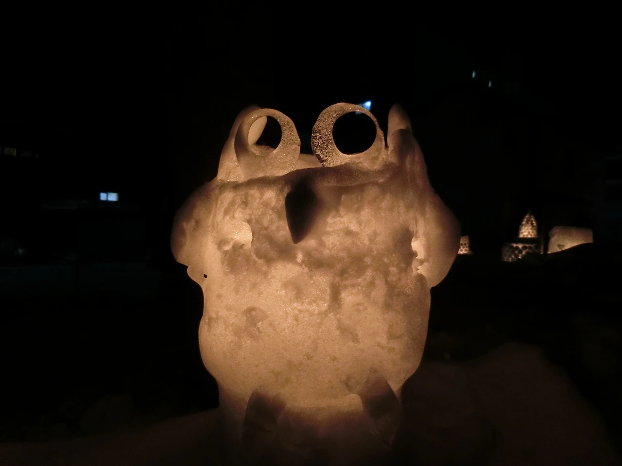 양동이에 눈을 채워 넣고 한 가운데에 양초가 들어갈 자리를 만들고 뒤집어 양동이를 빼내기만 하면 되는데, 익숙해지면 누구나 할 수 있는 작업이지만 가장 중요한 작업이다.