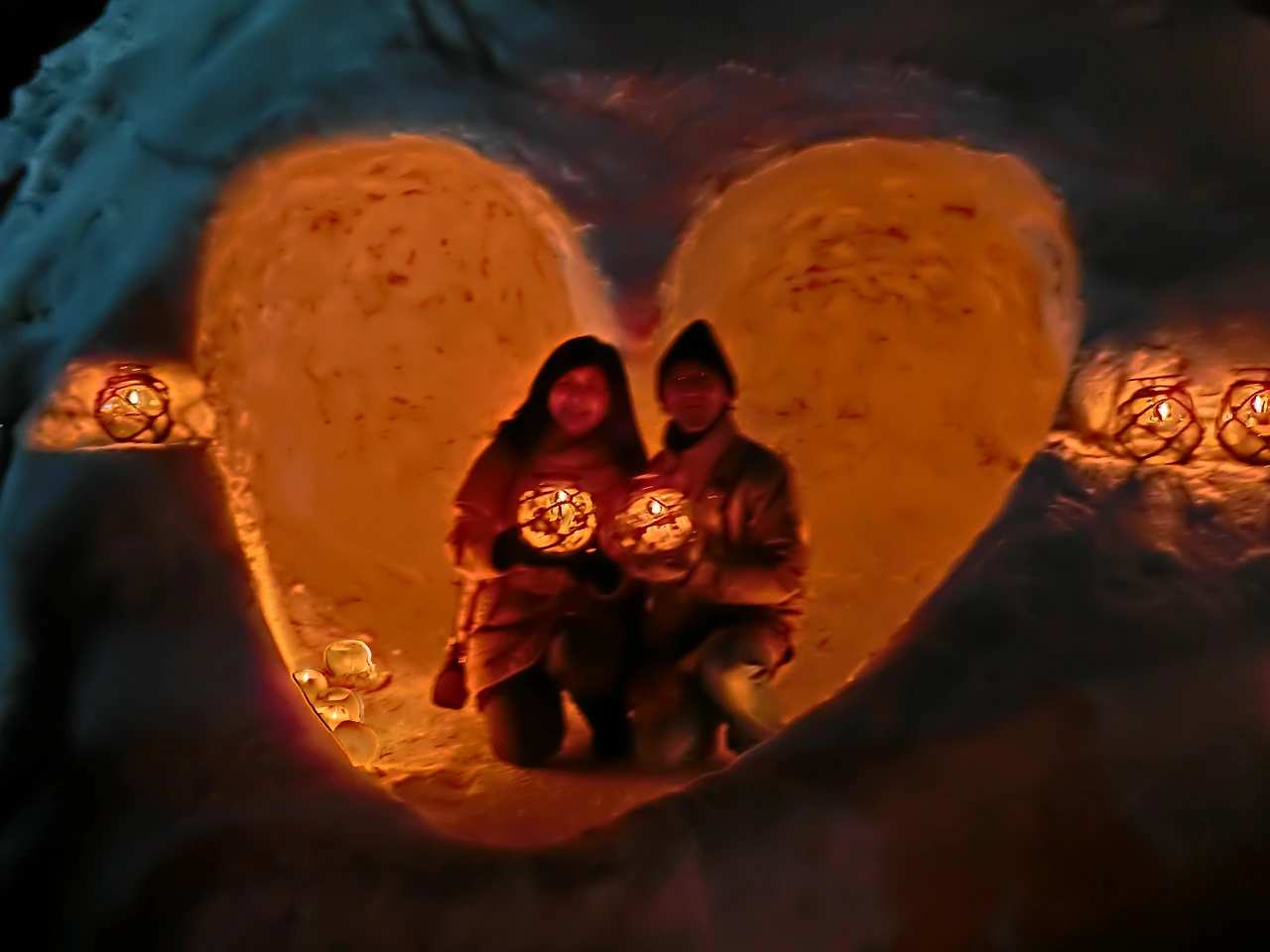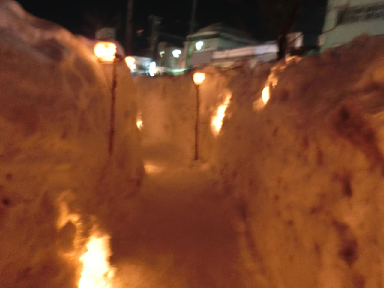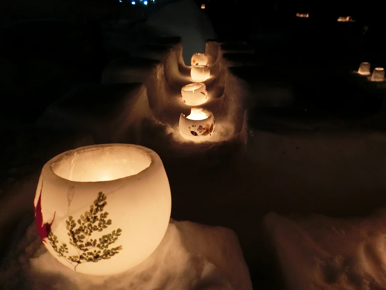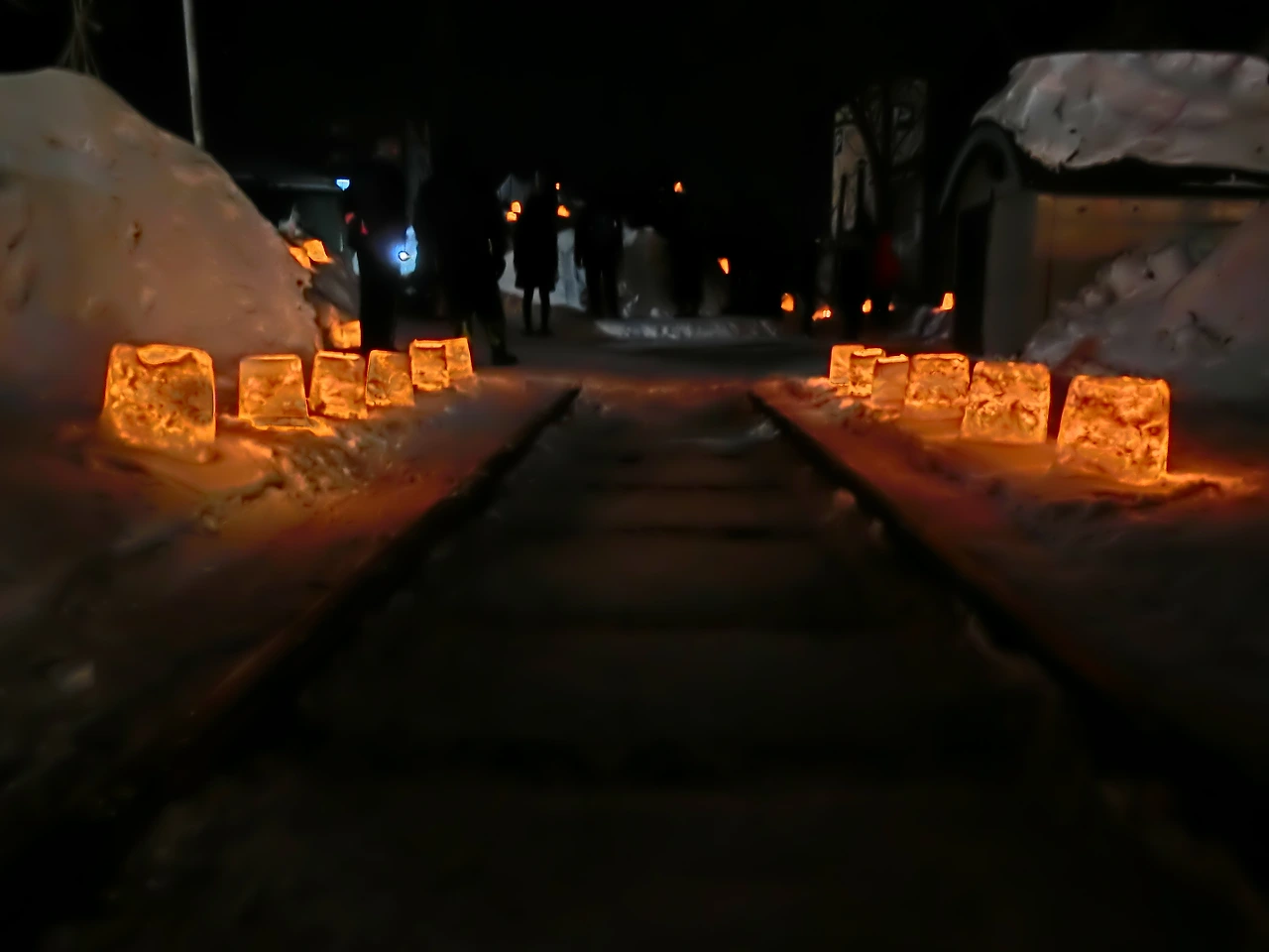 땅거미가 내려앉기 시작하자 옛 철길 골목은 눈 속에 흔들리는 촛불로 장관을 이룬다.