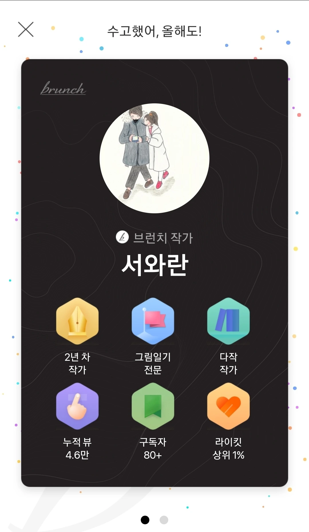 브런치 활동 결산 리포트와 작가 카드를 선물합니다.
