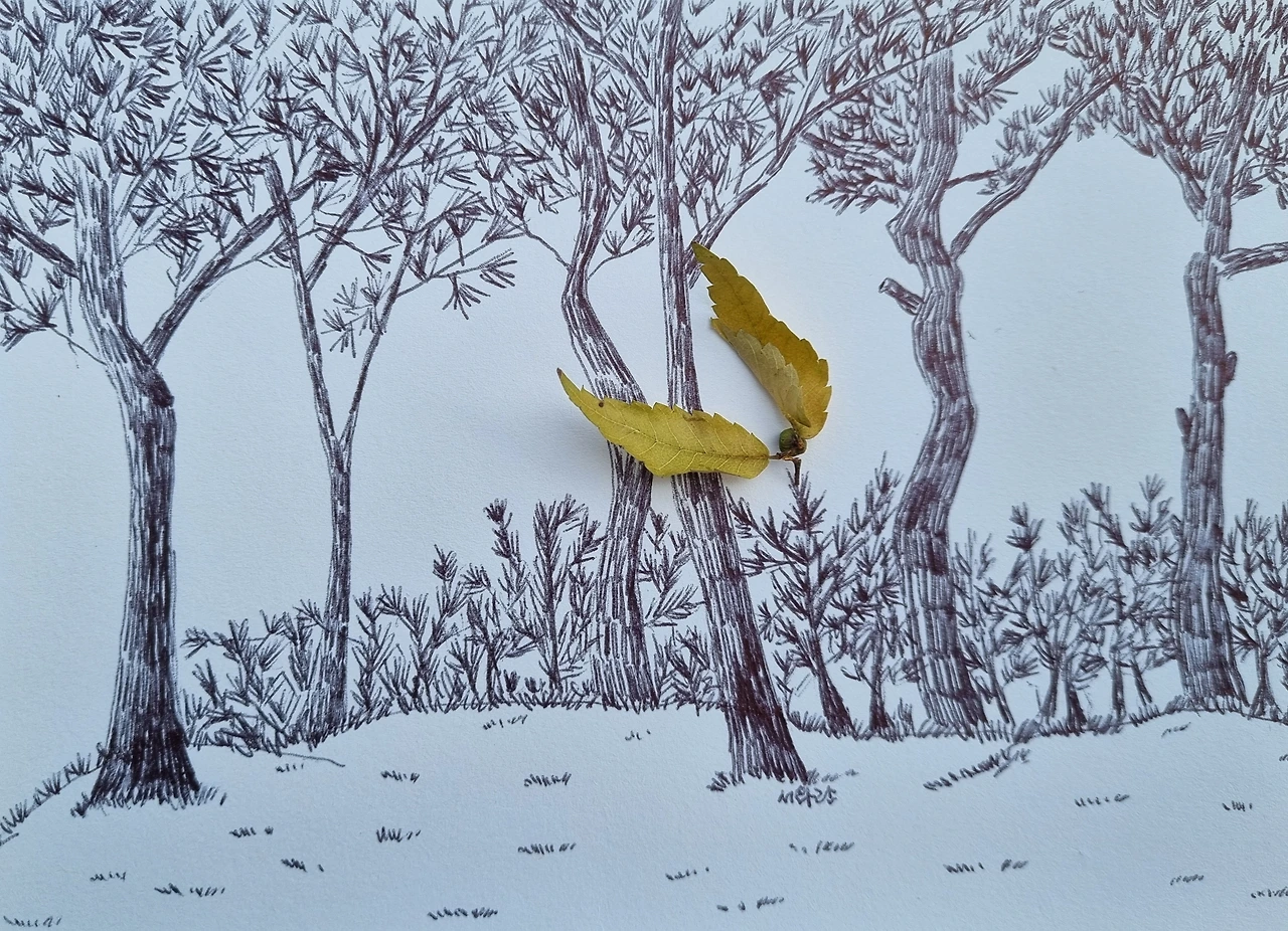 바람을 타고 종이 위에 사뿐히 떨어졌다.