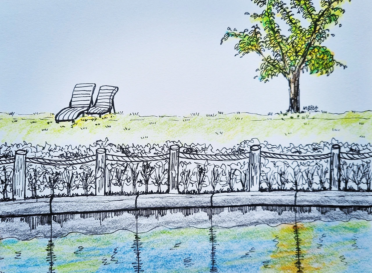 아침에 일어나는데 몸이 무겁다. 추석 연휴의 휴유증인가... . 커피를 내리고, 읽을 책과 간단한 드로잉 재료들을 가방에 넣고, 모자를 푹 눌러쓴 채로 공원으로 나왔다. . 생각보다 더 바람은 선선했고 운동하러 나온 사람들도 꽤 많다. 빠른 걸음으로 공원을 돌았더니 덥다. . 나무 그늘 벤치에 앉아 커피 향을 맡으며 눈앞에 펼쳐진 공원 풍경을 가볍게 드로잉. . 나뭇잎들은 노랑, 주황색 물이 들어있고, 바람은 살랑살랑 물결을 만든다. 주변 도시 소음 사이로 풀벌레, 새소리가 들려온다. . 아침 운동 나오길 잘했단 생각이 든다.