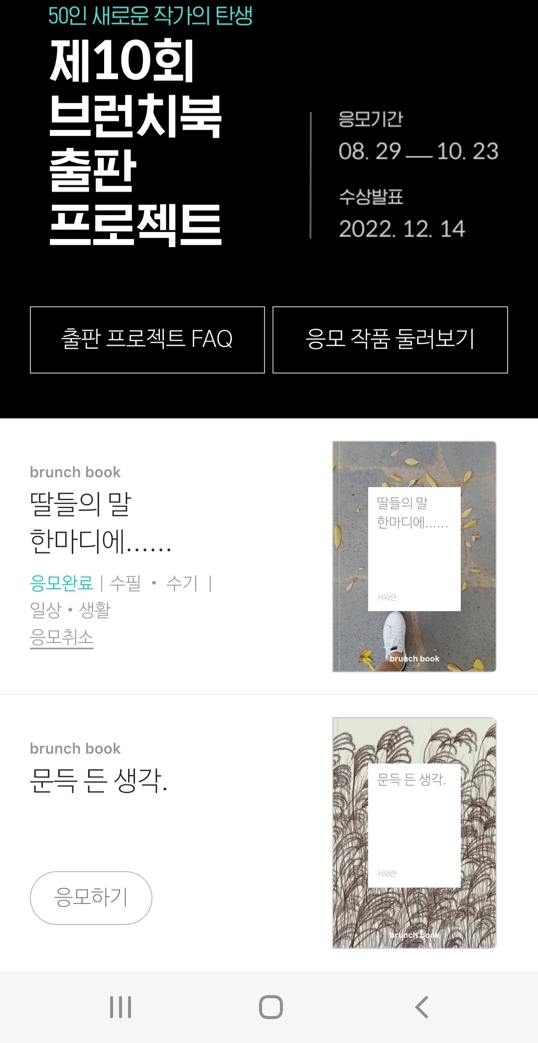 [글이 작품이 되는 공간, 브런치] 브런치는 1년에 1번 브런치북 출판 프로젝트가 있다. . 나는 그 기회로 최소 1년의 1권의 책을 만들겠다는 목표를 세웠었다. 그래서 오늘 브런치북 한 권을 또 만들 수 있었다. . [딸들의 말 한마디에...]라는 제목의 짧은 에세이집이다. . 기존에 올렸던 글과 그림들을 편집해서 딸들의 생각지 못 했던 말들로 웃고, 미소 지었던 이야기들로 엮었다. . 편집할 땐 귀찮고 힘들었지만 이 세상에 하나뿐인 브런치 북이 완성되었을 때 내가 느낄 수 있었던 감정은 [뿌듯함]이었다. ^^